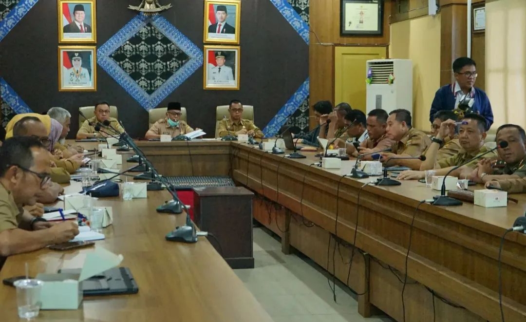 MUSI RAWAS- Sekretaris Daerah (Sekda) Kabupaten Musi Rawas (Mura) H Ali Sadikin memimpin rapat pembahasan pelaksanaan Pekan Raya Musi Rawas (Mura) Mantab 2025, Selasa (7/10/2025) di Ruang Rapat Bina Praja Setda Kabupaten Mura.