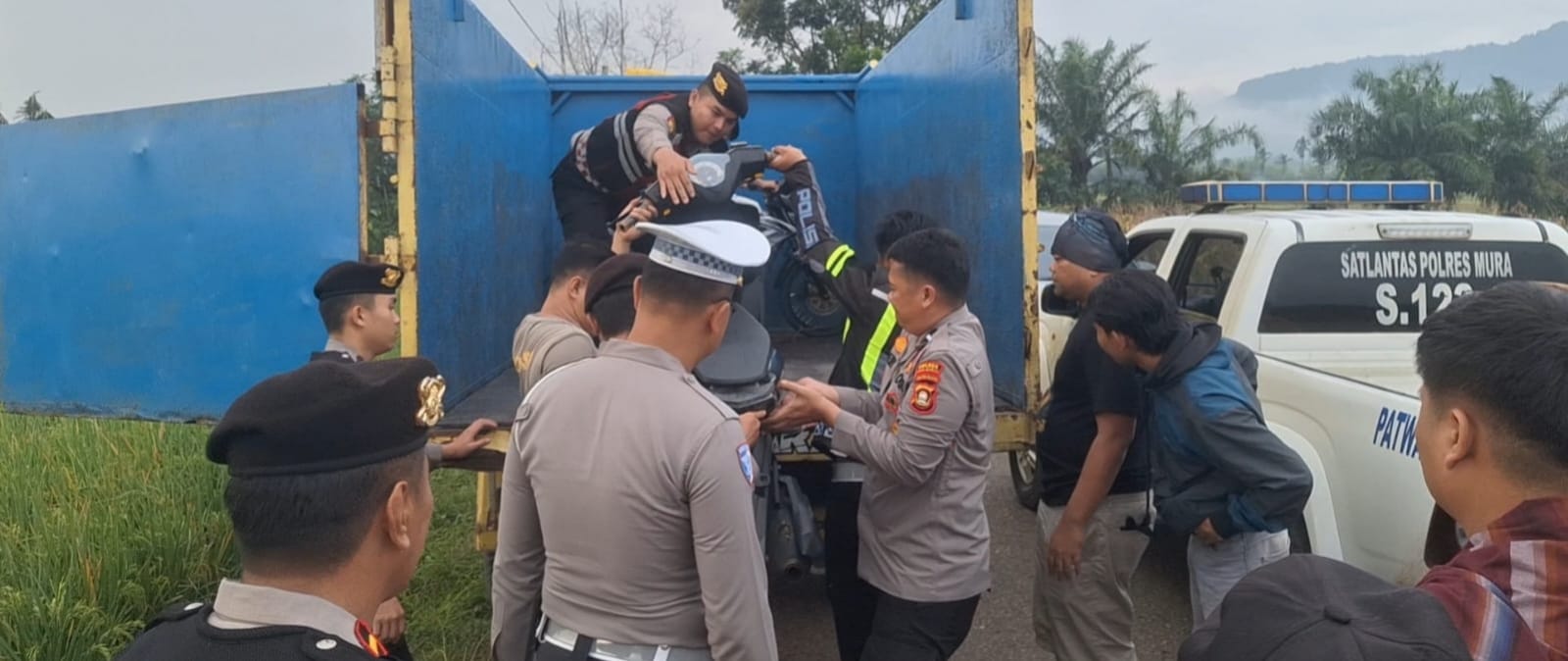 Dari penertiban tersebut, setidaknya ada 15 sepeda motor berbagai jenis dan merk diamankan oleh petugas dan kemudian diangkut menggunakan truk untuk dibawa ke Polres Mura.