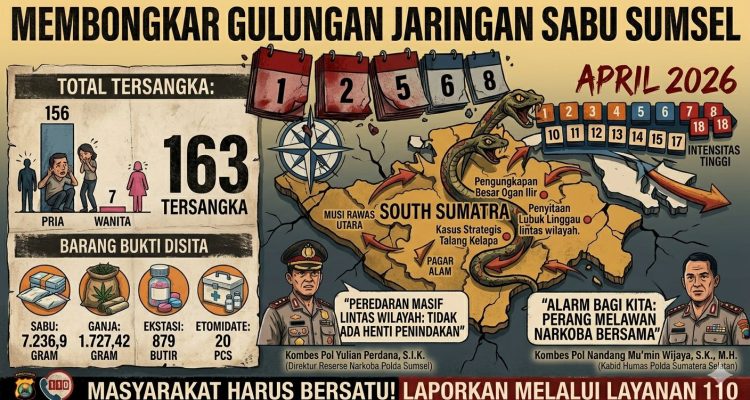 Ungkap Jaringan Narkoba Antar Wilayah, Ribuan Gram Sabu dan Ganja Disita KRIMINAL, SUMSEL|April 19, 2026April 19, 2026oleh Redaksi Berita Silampari Berita Silampari PALEMBANG- Polda Provinsi Sumatera Selatan (Sumsel) mempertegas posisi strategisnya sebagai