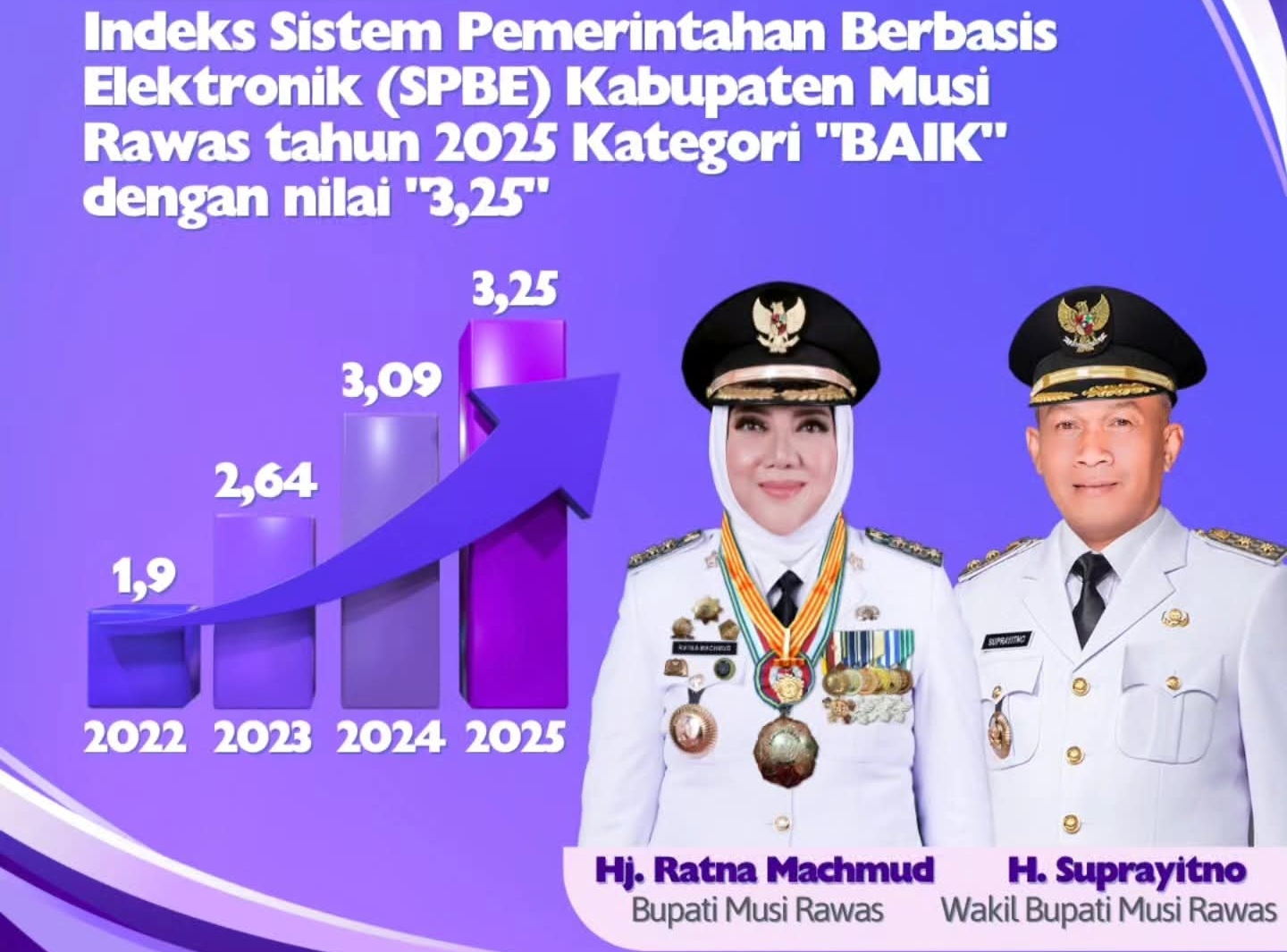 MUSI RAWAS- Pemerintah Kabupaten (Pemkab) Musi Rawas (Mura) sukses meningkatkan kualitas tata kelola pemerintahan digital. Berdasarkan hasil evaluasi Kementerian PANRB tahun 2025, Indeks Sistem Pemerintahan Berbasis Elektronik (SPBE) Mura melonjak ke angka 3,25 dengan kategori Baik dan naik dari tahun sebelumnya sebesar 3,09.