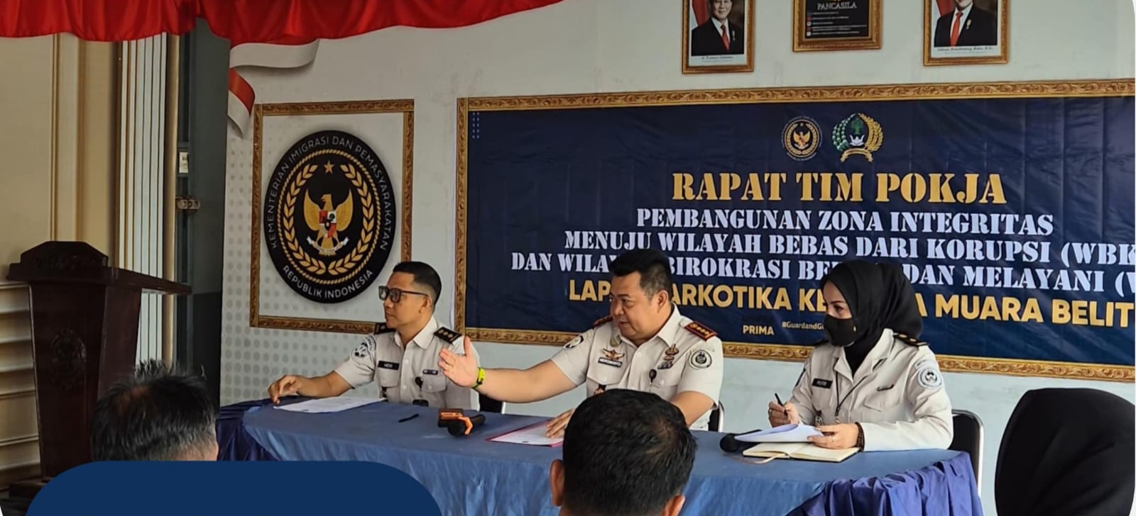 MUSI RAWAS- Kepala Lembaga Pemasyarakatan (Kalapas) Narkotika Kelas IIA Muara Beliti, Herdianto, memimpin rapat Tim Kelompok Kerja (Pokja) Pembangunan Zona Integritas menuju Wilayah Bebas dari Korupsi (WBK) dan Wilayah Birokrasi Bersih dan Melayani (WBBM), Rabu (11/3/2026).