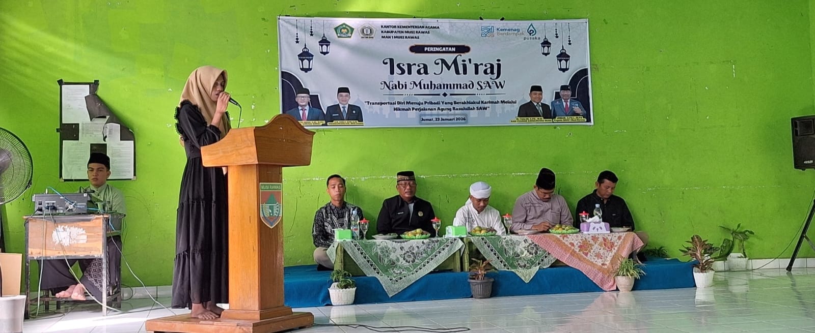 MUSI RAWAS- Keluarga besar MAN 1 Musi Rawas memperingati Isra Mi’raj Nabi Muhammad SAW, Sabtu (24/1/2026) di halaman sekolah. Dimana, kegiatan berlangsung khidmat tersebut dapat menanamkan nilai ketaatan dan akhlak bagi siswa dan siswi.