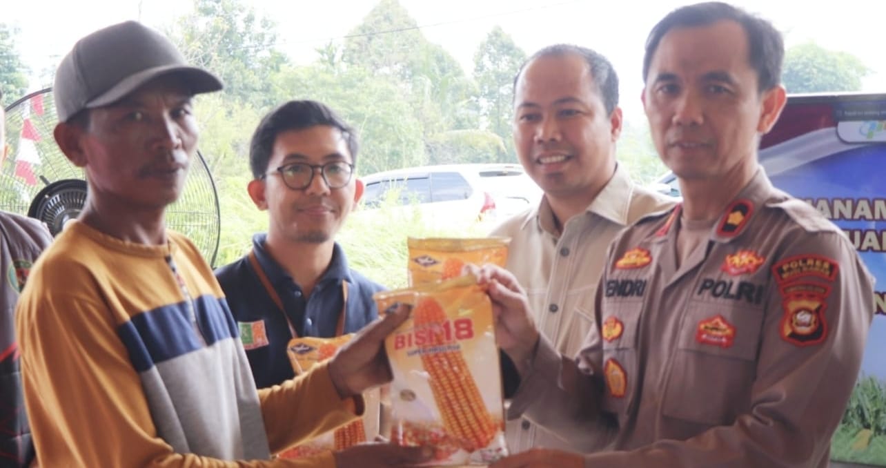 Wakapolres bersama stakeholder memberikan bantuan bibit jagung kepada Riduan kelompok Tani Cipta Karya, dengan luas lahan lebih kurang 2 hektare.