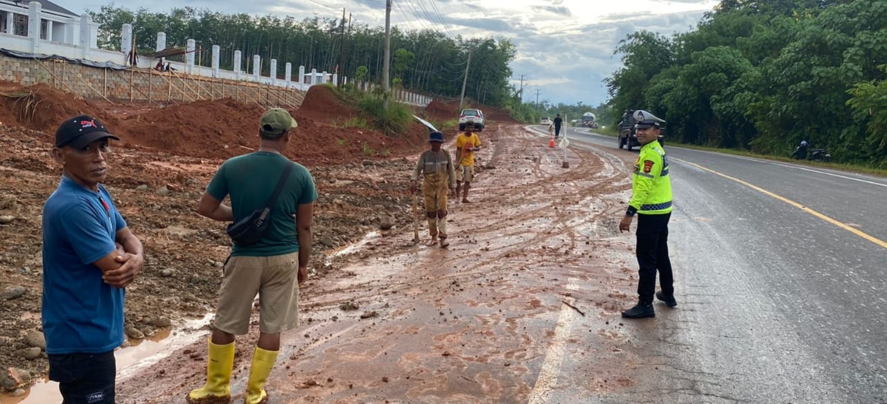 Himbauan tersebut disampaikan sebagai langkah antisipasi terjadinya kecelakaan lalu lintas akibat jalan licin dan tertutup material tanah yang terbawa aktivitas proyek.
