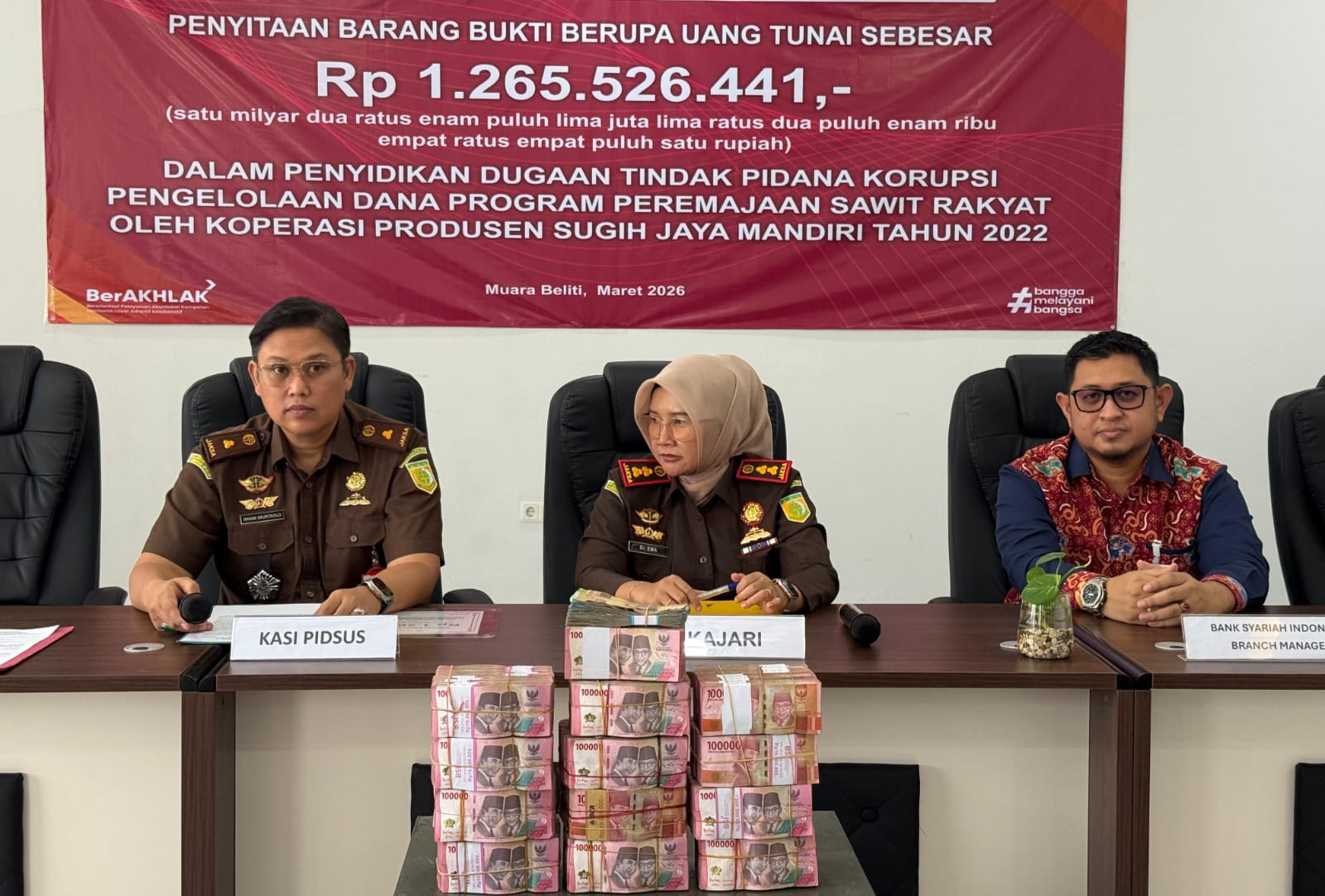 MUSI RAWAS- Kejaksaan Negeri (Kejari) Kabupaten Musi Rawas (Mura) menyita Rp1,26 Miliar dalam perkara dugaan tindak pidana korupsi pengelolaan Dana Program Peremajaan Sawit Rakyat (PSR) oleh Koperasi Produsen Sugih Jaya Mandiri.
